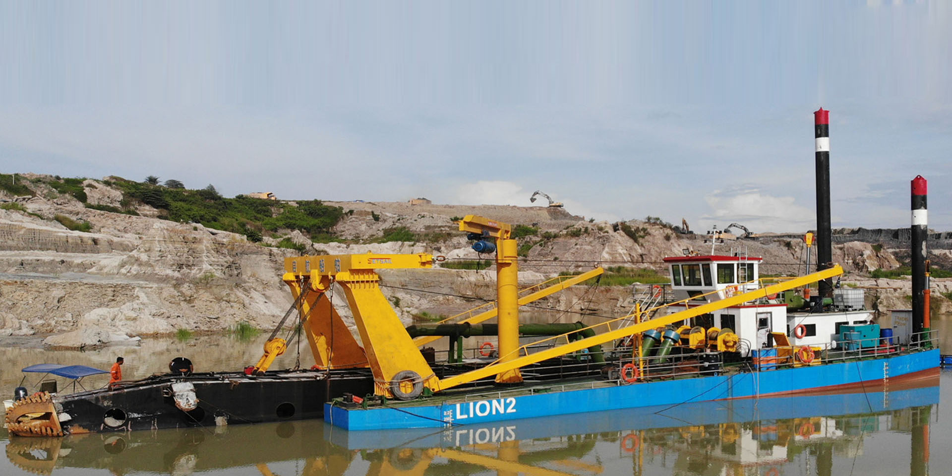 濰坊東洋海科重工建造的4000流量全電動水下泵絞吸船服務馬來西亞錫礦治理項目現場